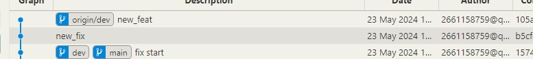 继续切换到 dev 拉取一个新分支 fix,随后 进行 修改提交