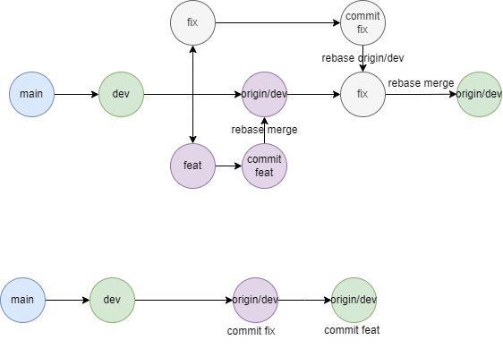 git add something git commit -m "something" git reabse origin/dev ---若出现冲突--- 处理冲突 git add . git rebase --continue